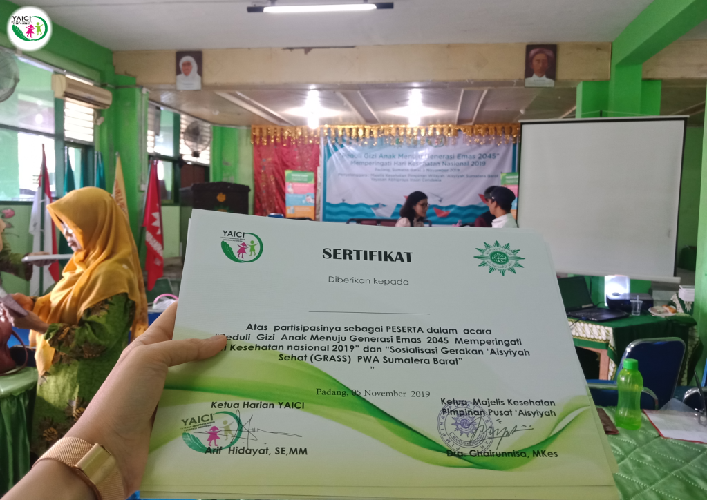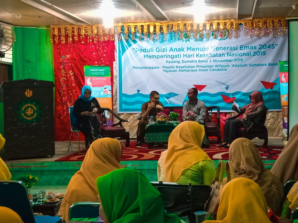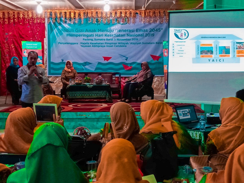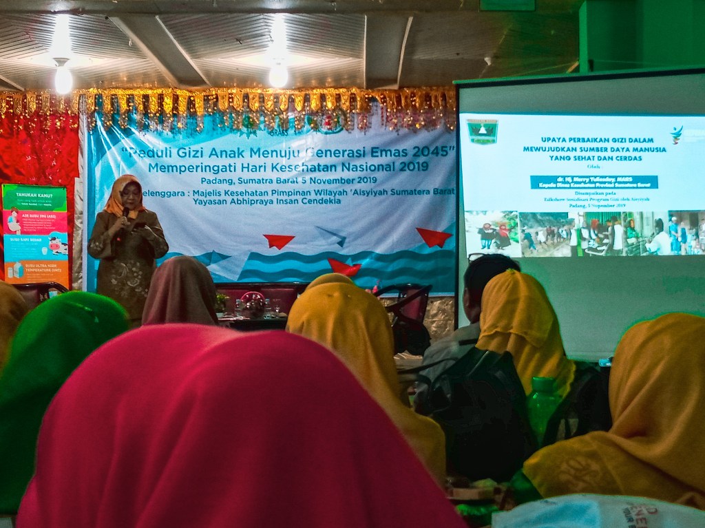 Peringatan Hari Kesehatan Nasional kemarin dimeriahkan dengan berbagai kegiatan menarik tentang kesehatan, mulai dari tingkat pusat sampai ke daerah-daerah di seluruh Indonesia. Salah satu kegiatan yang sangat amat menjadi perhatian dan sorotan khusus adalah tentang edukasi gizi anak untuk mencapai kualitas sumber daya manusia Indonesia di masa depan yang lebih sehat, produktif, mandiri, dan unggul. Berupa forum ilmiah dan talkshow. Yayasan Abhipraya Insan Cendikia Indonesia (YAICI) bekerja sama dengan Organisasi Perempuan Persyarikatan Muhammadiyah (‘AISYIYAH) mengadakan acara pada Selasa, 5 November 2019 kemarin dengan mengangkatkan tema “Peduli Gizi Anak Menuju Generasi Emas 2045” di Aula Pimpinan Wilayah ‘Aisyiyah Sumatera Barat.