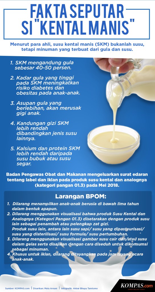 Kalau pembahasan tentang SKM, ternyata masih banyak masyarakat kita yang menganggap Susu Kental Manis (SKM nama dulunya) yang sekarang sudah ganti disebut dengan Kental Manis saja ini sebagai Susu. Bahkan dipakai sebagai pengganti susu. Yang paling bikin kaget diberikan pada bayi sebelum usia 12 bulan layaknya ASI, bahkan sebagai sumber gizi utama untuk si kecil 😢 Diketahui kurangnya pemahaman masyarakat tentang penggunaan SKM yang tepat ini sudah berlangsung puluhan tahun. Sehingga sekarang Dinas Kesehatan bersama tenaga kesehatan Provinsi Sumatera Barat lagi gencar-gencarnya melakukan pelatihan dan edukasi tentang ini. Mengacu pada keseriusan mereka di bidang pembangunan kesehatan, sehingga Badan Pengawas Obat dan Makanan (BPOM) tahun lalu akhirnya mengeluarkan Perka No. 31 Tahun 2018 tentang Label dan Iklan pada Produk Susu Kental.