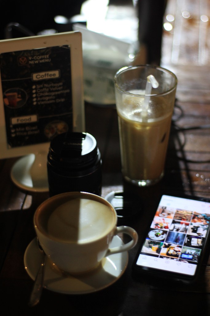 Just walking into a random cafe in Padang (well, not that random, we found it on social media accounts via Instagram guide, they were @vcoffees, I was interested and I had sent a message a few days ago about one of their desserts that looked tempting), you can find a real gem Actually, we were not far from the city center, dekat persimpangan dari akses jalan utama, tidak jauh dari salah satu icons kota Padang yaitu Mesjid Raya Sumatera Barat, so we weren’t expecting something extraordinary, just wanted a good coffee to go. But seeing their coffee and desserts we decided to stay there longer, and put in the bucket list to visit again and again… I guess we made the best decision! And their Chocolate Larva was the quite delicious no less than one i ever tired and their blackpanther was again If only all Padang cafes were like this. Eh, jangan ding. Entar nggak ada variasinya.