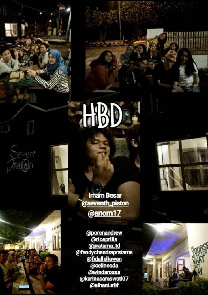 Nyampe, masuk, tegur sapa dengan si abang barista, mesan minum dan makanan, ngobrol dengan si abang owner (Beliau pun bertanya tentang berita yang lagi viral soal si kakak), milih meja dan duduk. My cabat permisi keluar katanya mau cek motor, aku pikir dia khawatir dengan lecet motornya pasca nabrak tadinya. Dia cukup lama juga baru balik ke meja. Eh, gak taunya pas balik bawa surprise, dong. Ada rainbow cake lengkap dengan tulisan ‘Happy Birthday’ dan sebuah lilin putih besar yang menyala. Plus sambil ngucapin Happy Birthday (aku bingung, ini dia nyanyi atau ngucapin aja, mbuhlah aku lupa). But, hey,,you! Thanks ya, beib.